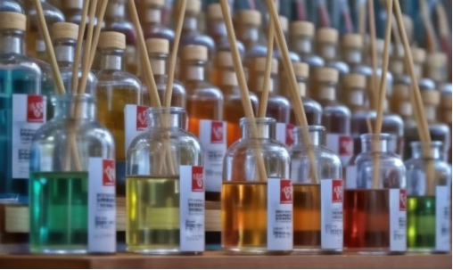 2、制作无火藤条香薰:添加藤条香薰溶剂制作成无火藤条香薰补充液。